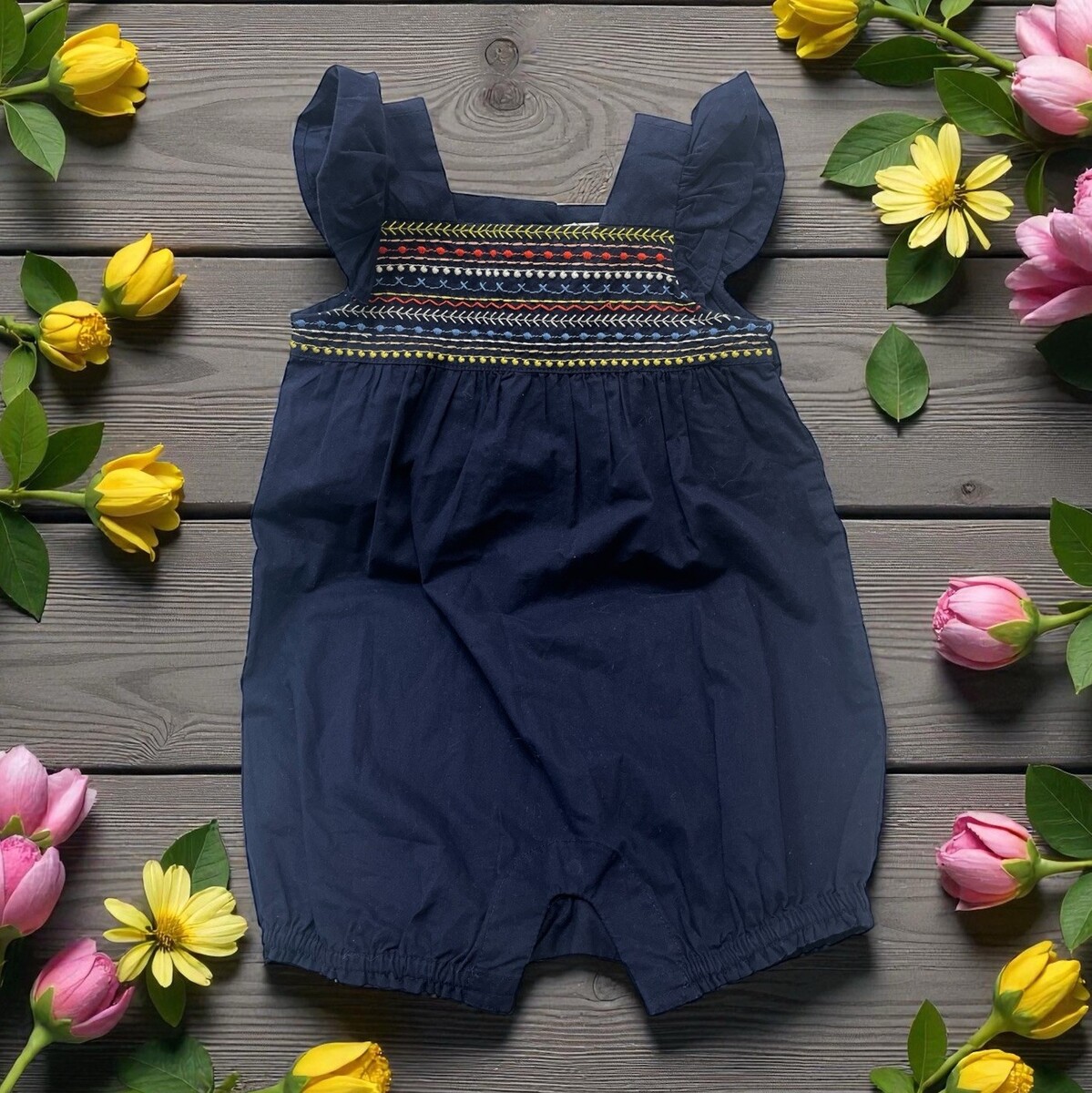 NWT Baby Gap Romper Flutter Sleeve colorful Embroidered 12-18M Navy blue