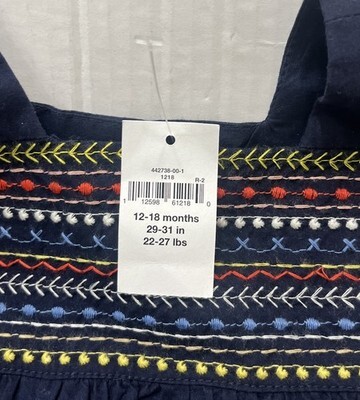 The NWT Baby Gap Romper in navy blue is a colorful and playful outfit perfect for a little girl aged 12-18 months. This romper features embroidered details and flutter sleeves, making it ideal for summer and spring occasions. This is such a cute and fun style, which is sure to make your baby stand out in a charming way. Please let me know if you have any questions!