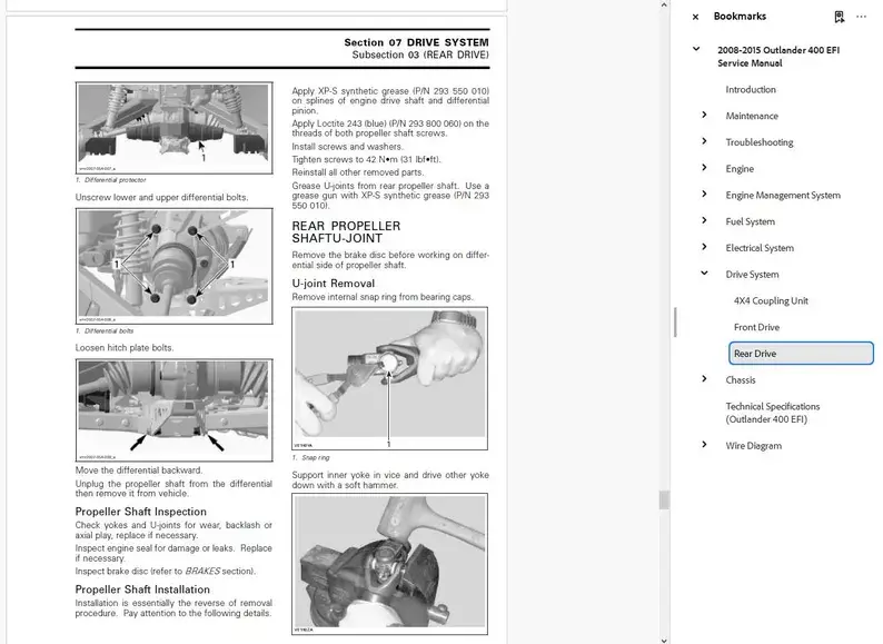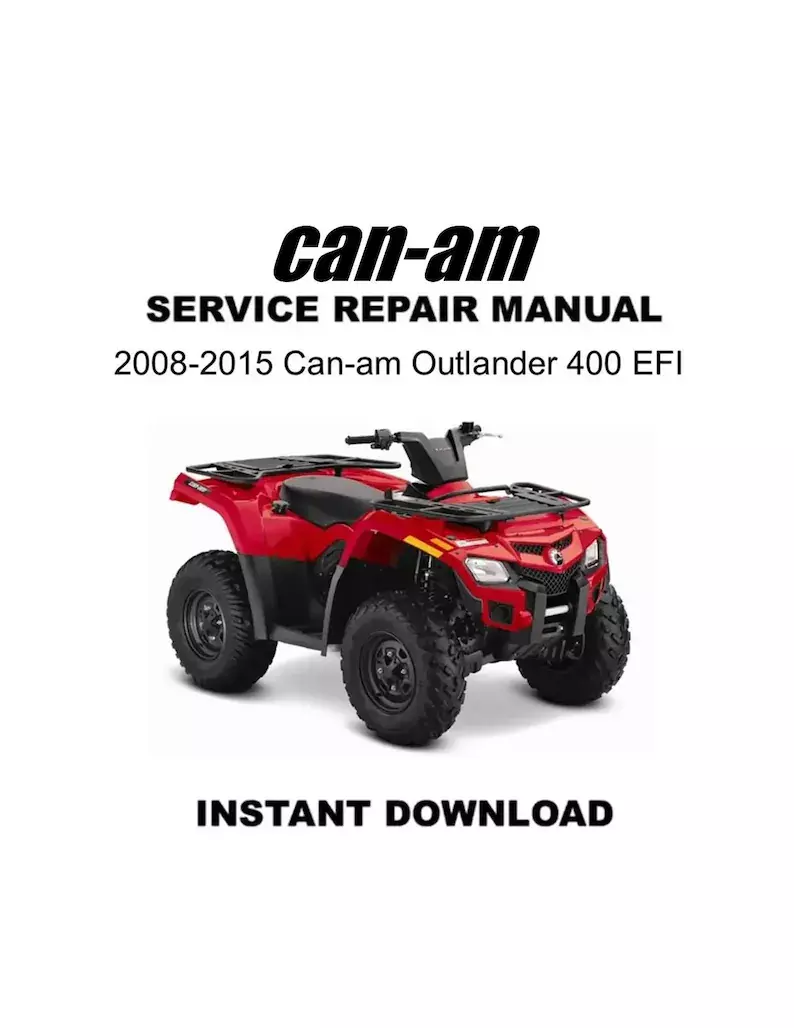 This manual includes model year 2008-2015 for the Can-Am Outlander 400 EFI. This service manual is the most up to date version. This manual would be used by a technician at a shop and may be used for other model years.