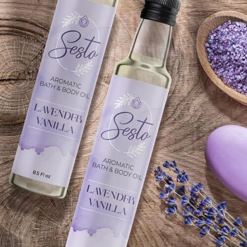 Sesto Aromatic Bath & Massage Oil - Lavender Vanilla - 8.5oz, with Label