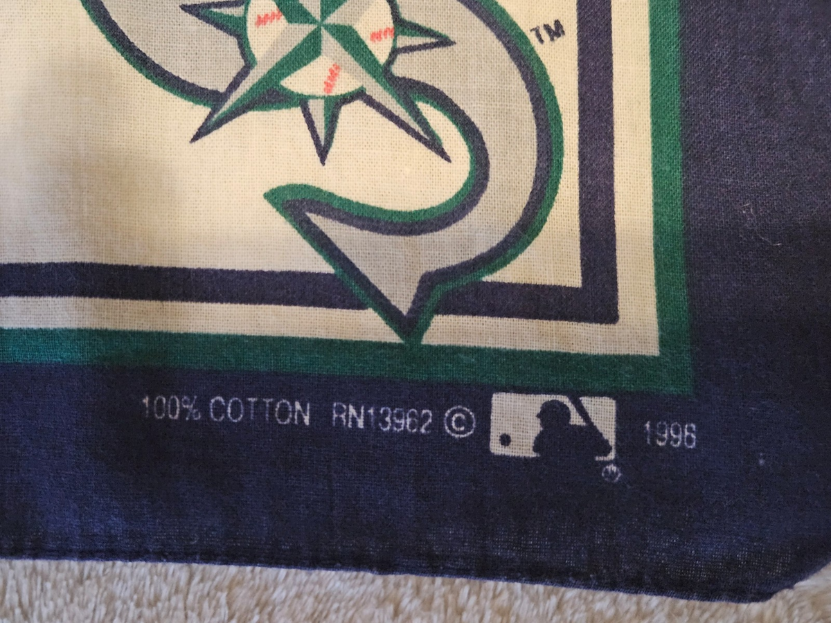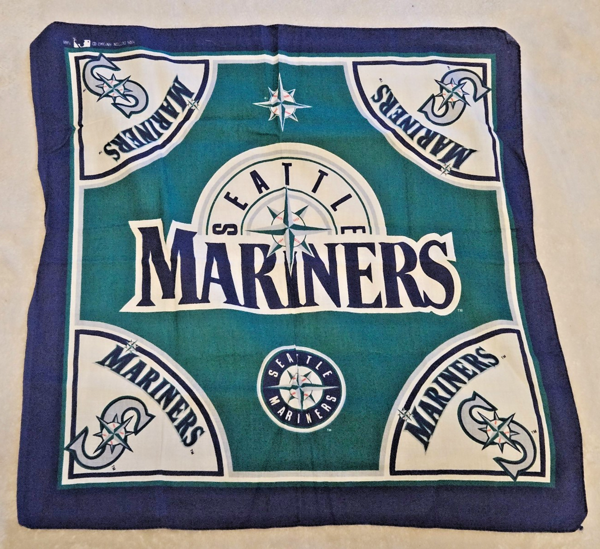 Vintage Seattle Mariners 1996 Teal Blue White Bandana Handkerchief Cotton