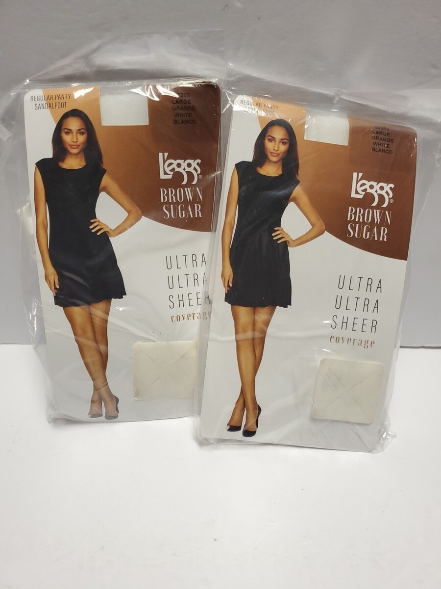 2pk Legg's Brown Sugar Ultra Ultra Sheer White Pantyhose Large 50263 NEW