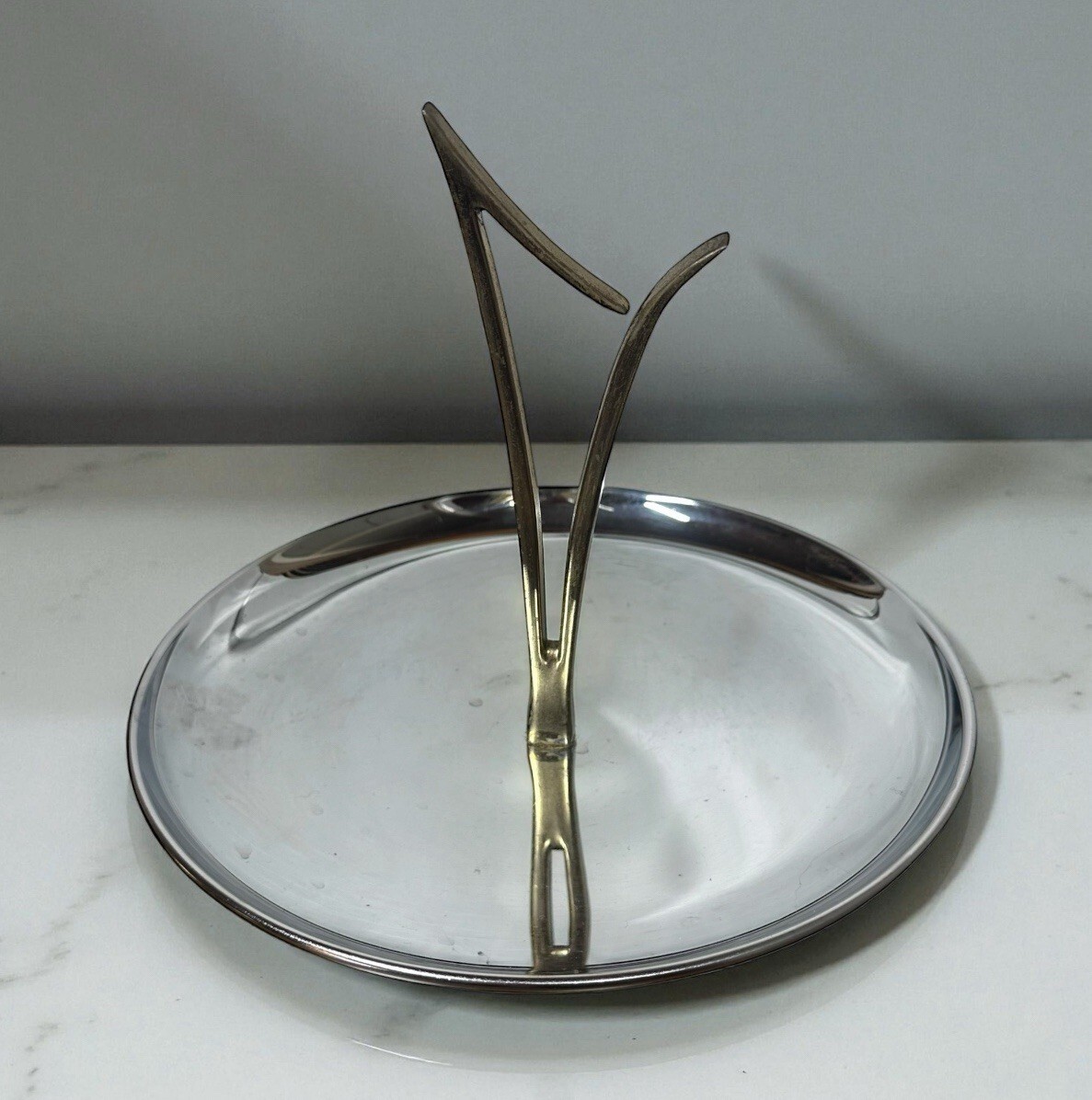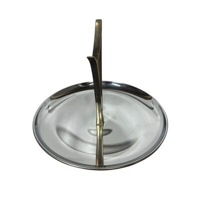 Kromex Chrome Tidbit Serving Tray Retro MCM Vintage 1950s Art Deco Atomic Brass Toned Handle
