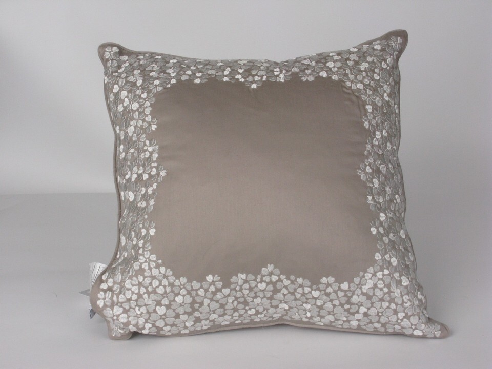 classic floral scroll pattern in soft hues in soft hues of mink and ivory adorn the duvet and shams