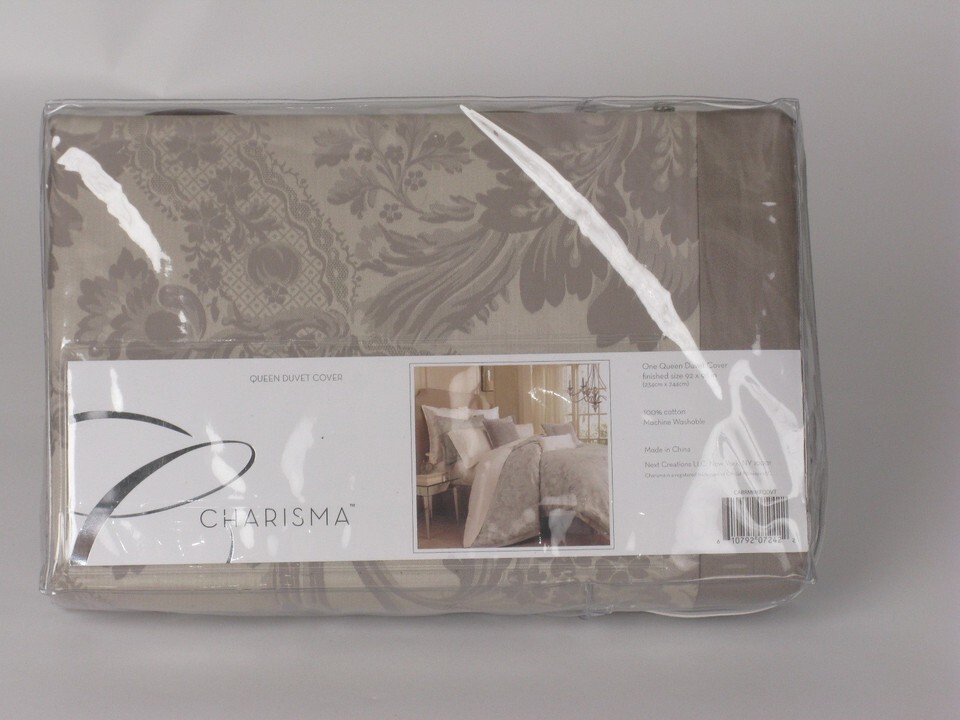 Charisma CARRINGTON Floral Scroll Mink Taupe 7P Queen Duvet Cover Set $1250