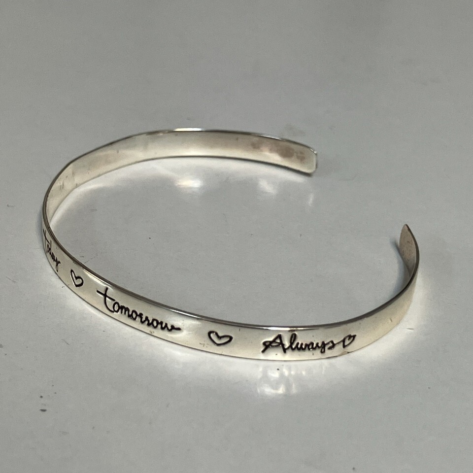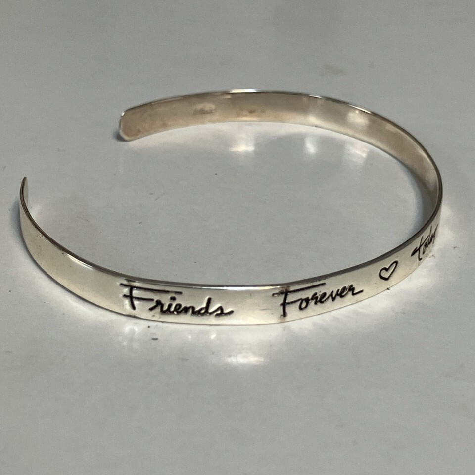 Sterling Silver 925LA Themed Cuff Bracelet “Friends Forever Today Tomorrow ”