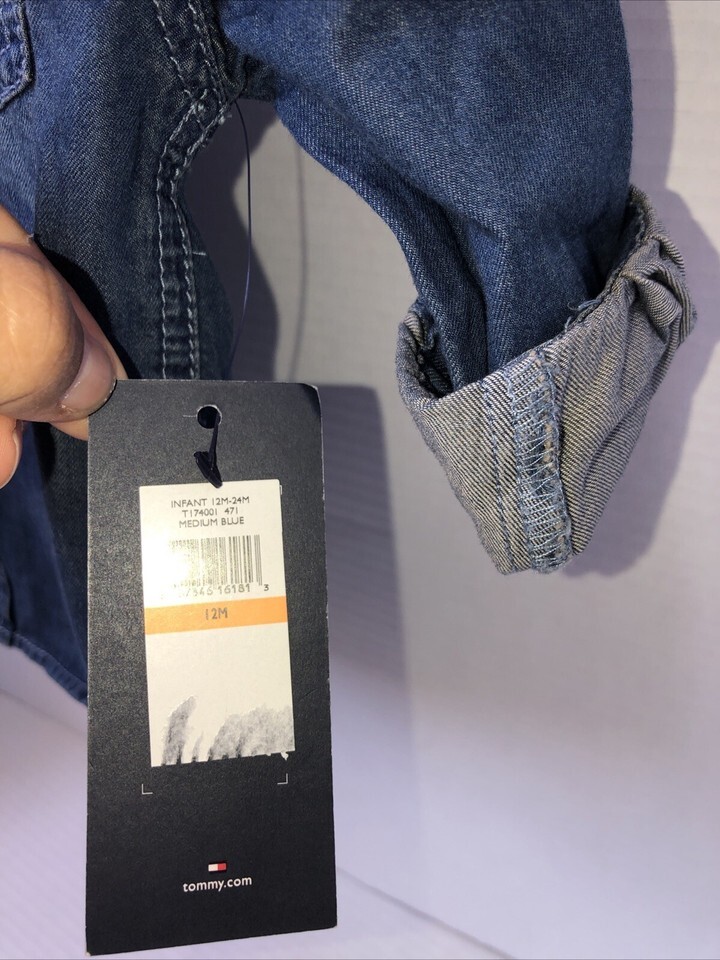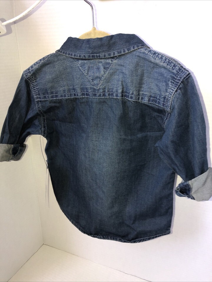 Toddler Boy Tommy Hilfiger Button Up Denim Shirt Size 12 Months New With tags