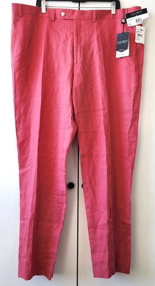 Lauren Ralph Lauren Pants Mens 42x32 Red Classic Fit Linen Edgewood Dress New