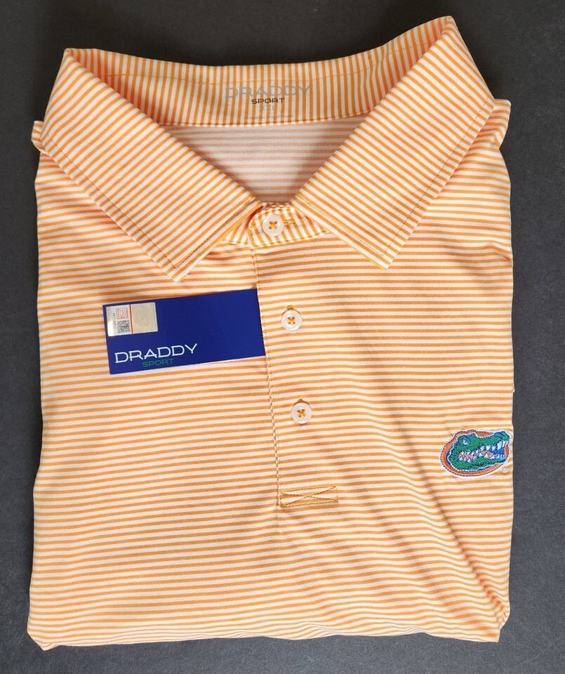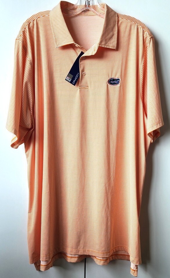 B. Draddy Sport Polo Florida Gators Mens 2XL XXL Orange stripes Shirt New w/ tag
