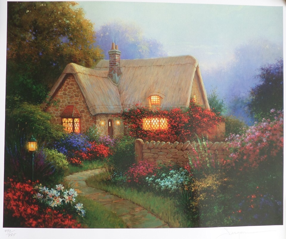 Limited Edition 490/975 Signed by Sergon and with Letter of Authenticity for "Bougainvillea Cottage" print.