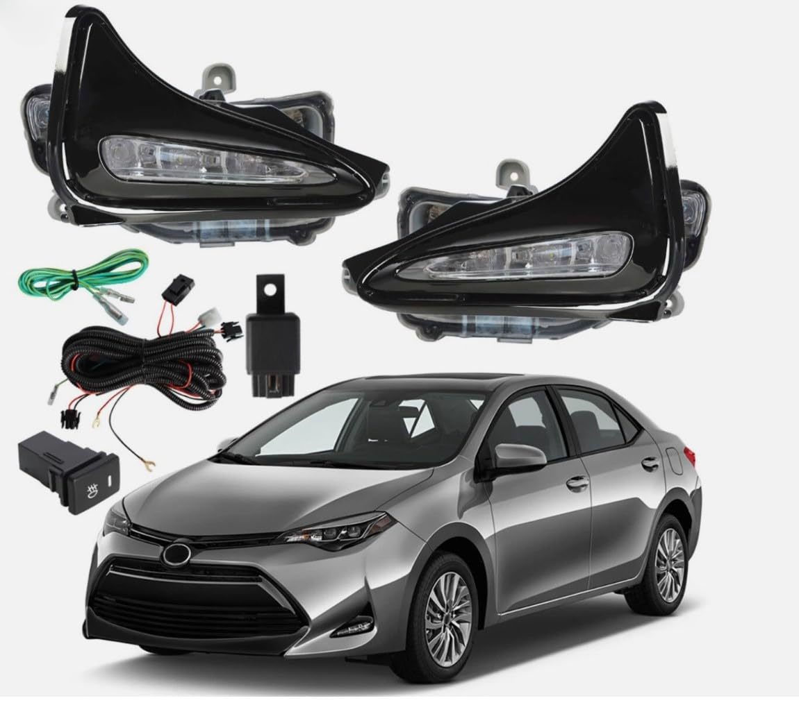 Fog Lights Lamps w/Cover Switch Kits For 2017 2018 2019 Toyota Corolla L LE XLE
