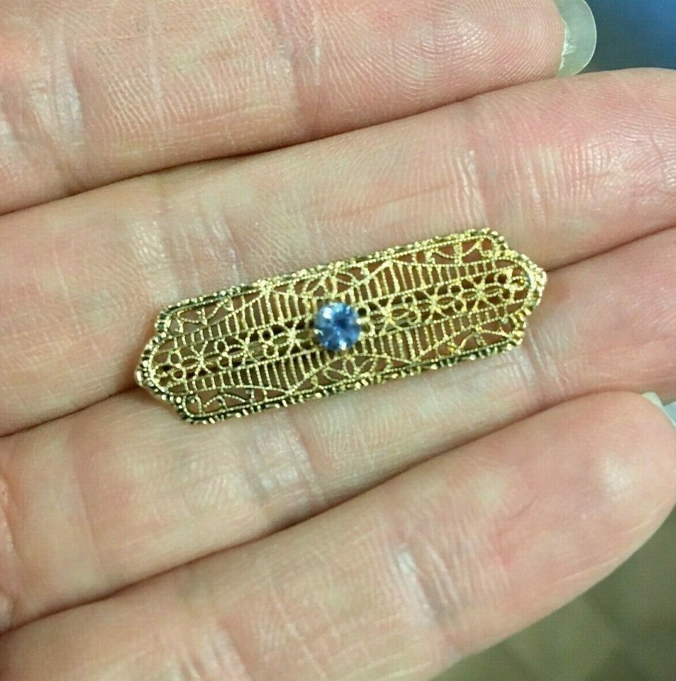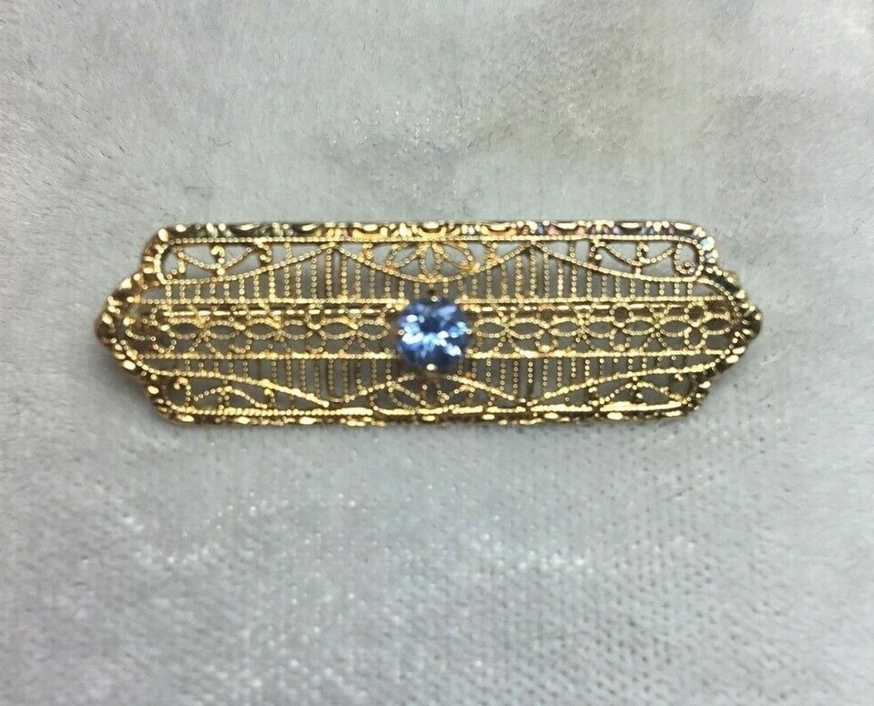 10k Yellow Gold Filigree Genuine Natural Sapphire Pin (#J5324)