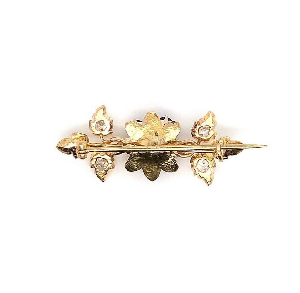10k Victorian Mine Cut Genuine Natural Diamond Flower Pin (#J5514)
