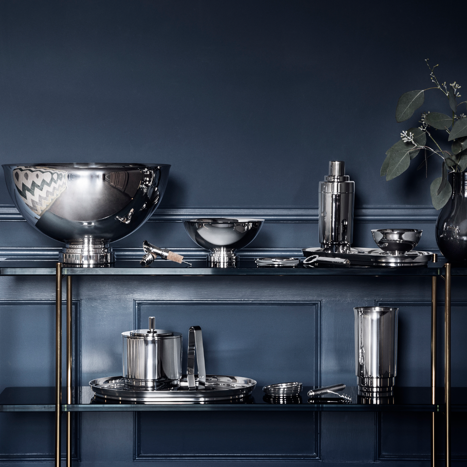 Georg Jensen's ever popular Manhattan bar accessories capture all the glamour of New York in the Art Deco period and from coolers to shakers, the stainless steel set has found its way into home bars across the world.