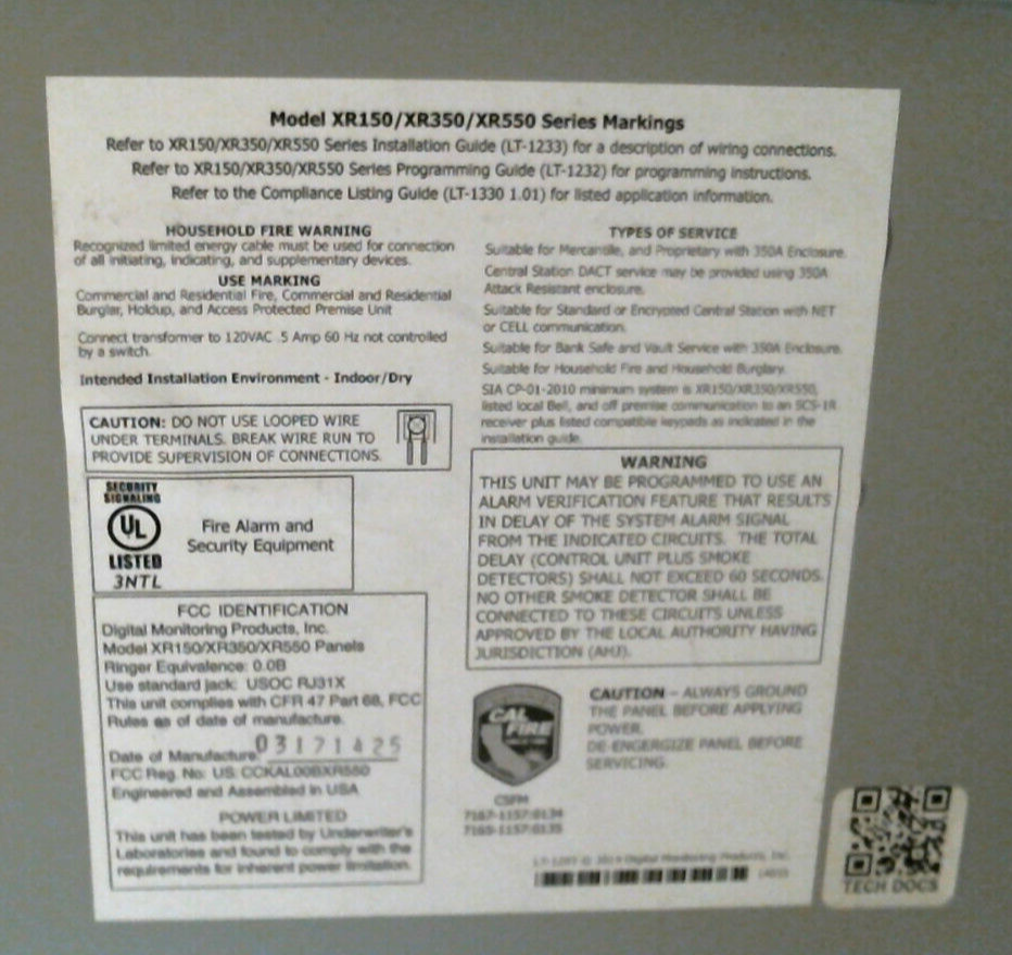Digital Monitoring Products XR150 Series Access /Burglary/Fire 142-Zone Panel