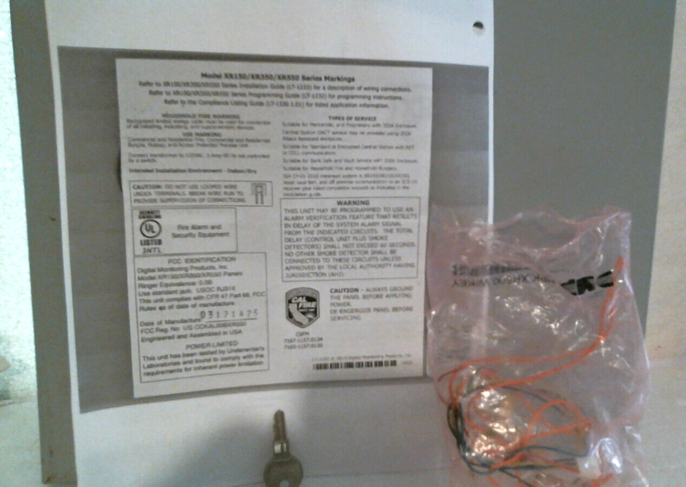 There were not at this estate auction any family members to tell us things like "Oh, Dad was going to fix that and use it on his boat" kind of thing. Someone had rented a retail storefront and looks to have intended to open an electronics sales-and-repair shop when they passed away. This security control panel was never used anywhere, the knock-out things for installing the connections are still there but a small plastic bag of connecting wires was opened. Also there is only one key and you would expect there to have been at least two. I think it possible it was intended to be installed in the storefront by the owner himself. It may be that he was partially through the process.