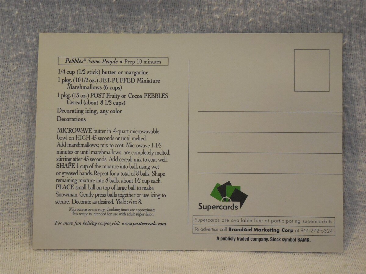 Flintstones Post Fruity Pebbles - Pebbles Snow People Recipe Post Card Unused