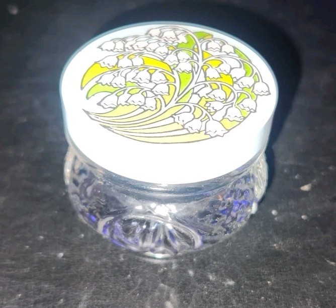 Vintage 1970s Avon LILY OF THE VALLEY Cream Sache Embossed Bottle Jar With Lid