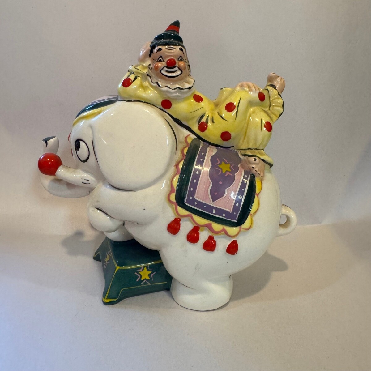 Keywords: ceramic, clown, elephant, piggy bank, vintage, collectible, circus, retro, japan, novelty, coin bank, whimsical, toy