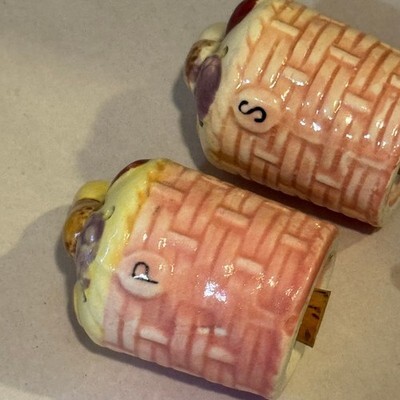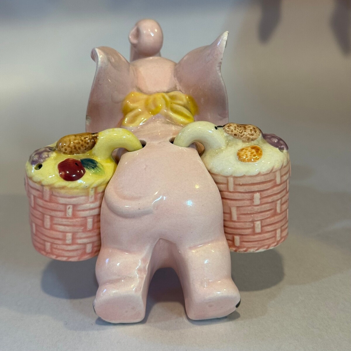 Keywords: ceramic, novelty, collectible, vintage decor, kitchenware, tableware, animal figurine, pink decor, whimsical, kitschy, salt shaker, pepper shaker, japan import