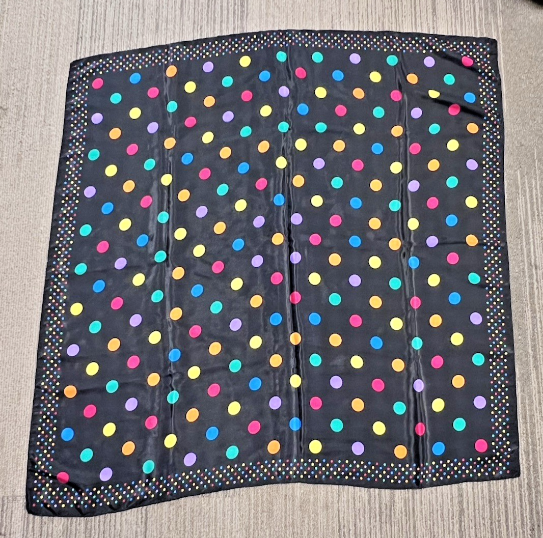 Just a Colorful Polk a Dot on Black Background Scarf 31" Hand Rolled Edge it has been used and is in very nice shape