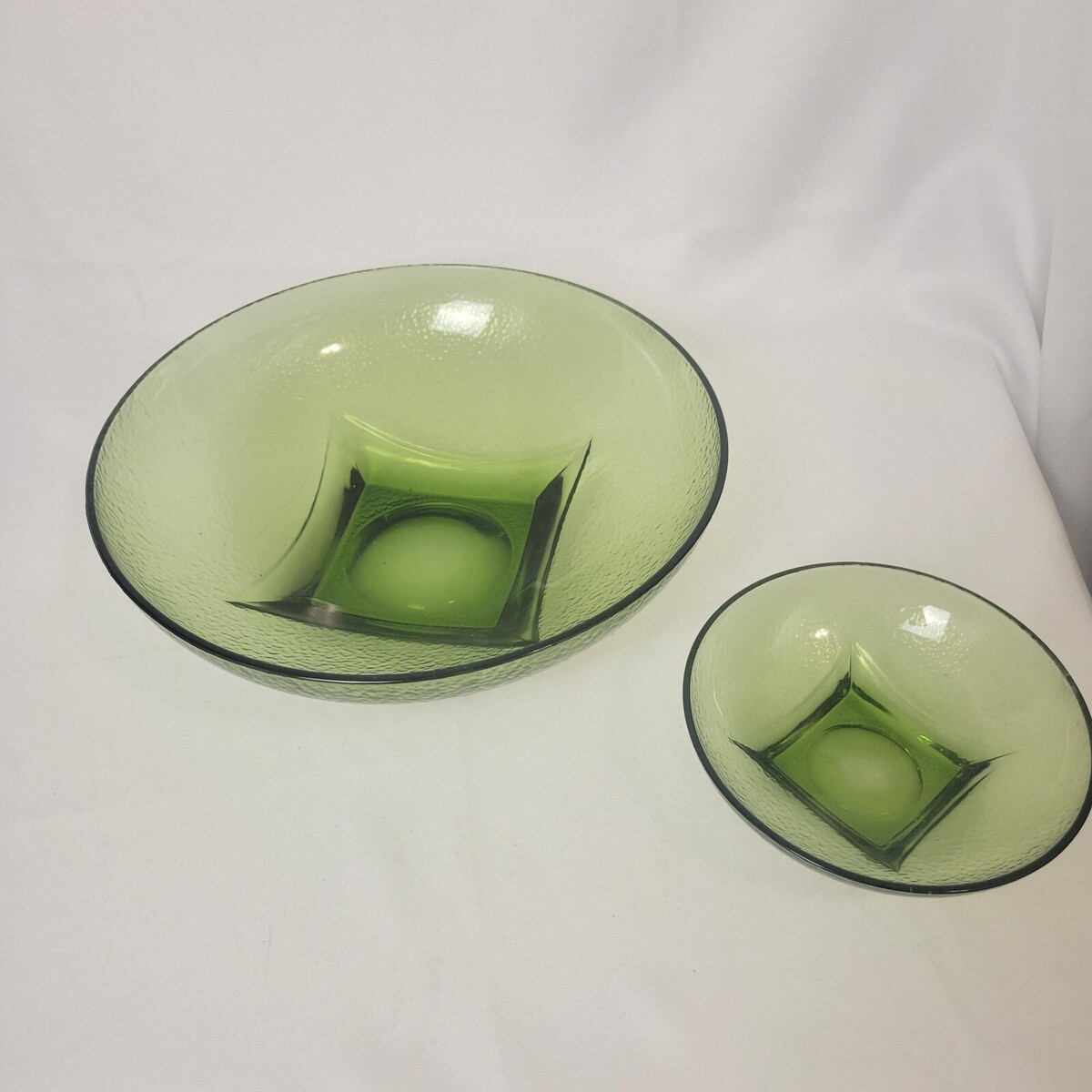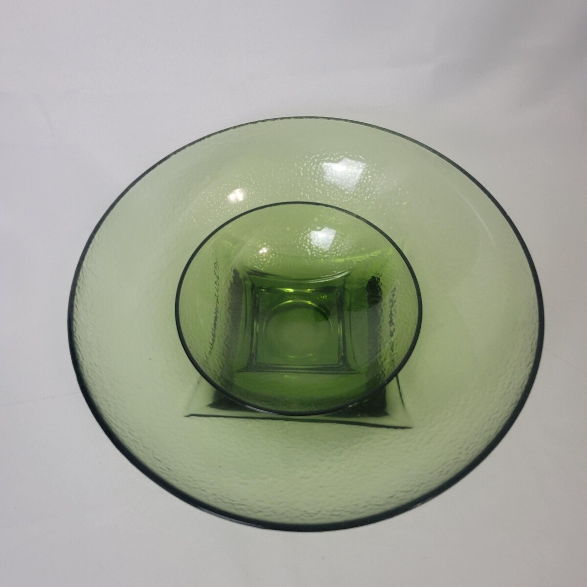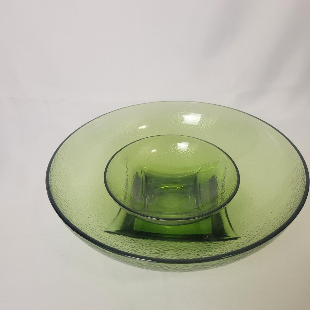 Hazel Atlas Colony Bowl Set Avocado Green Chip Dip Serving Pebbled Glass Vtg MCM