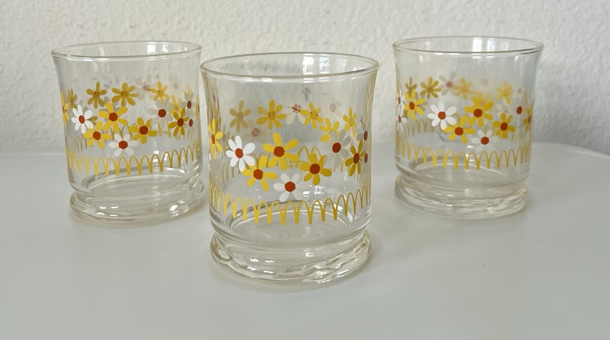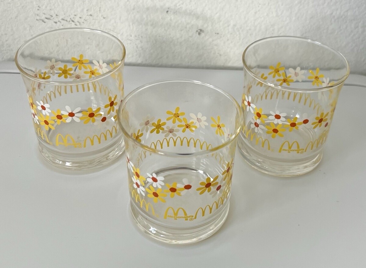 3 Vtg 80's McDonalds Flowers Daisy Floral Libby's Juice Glass Retro Lowball