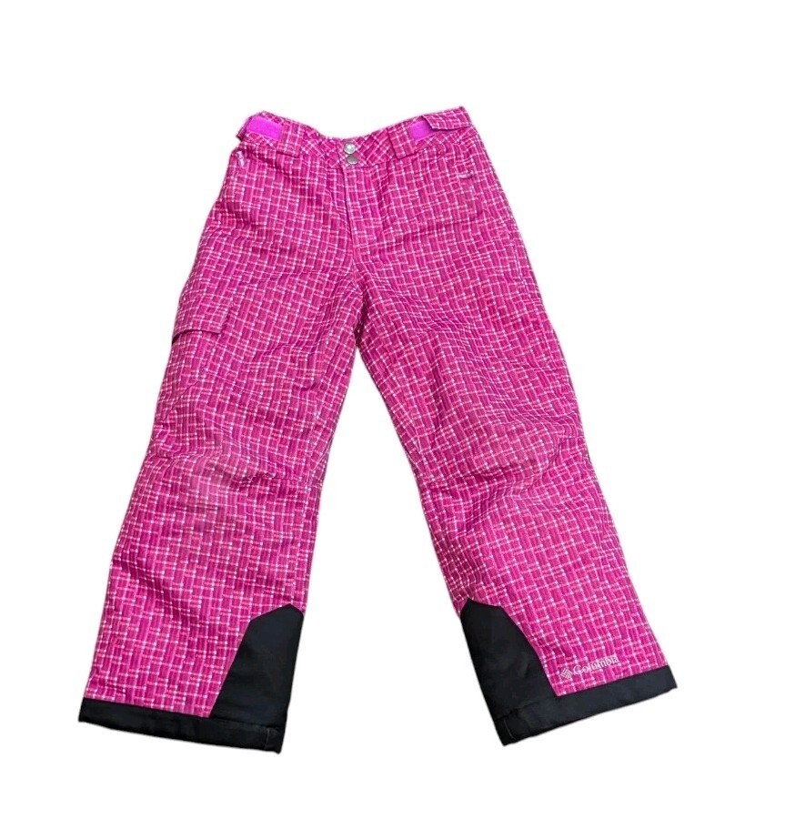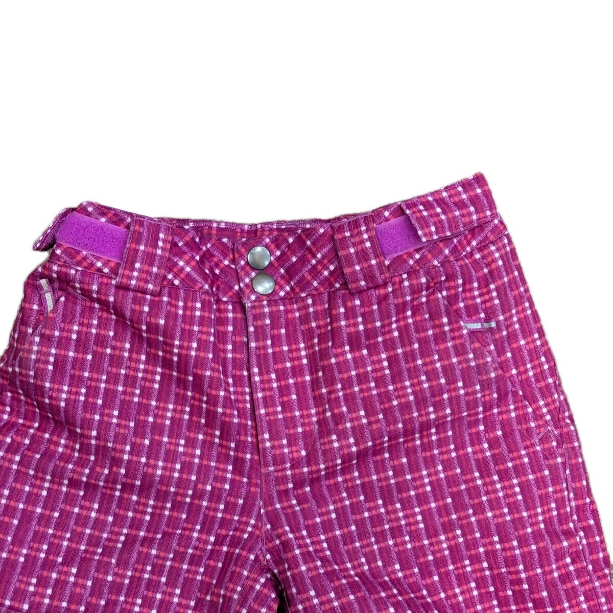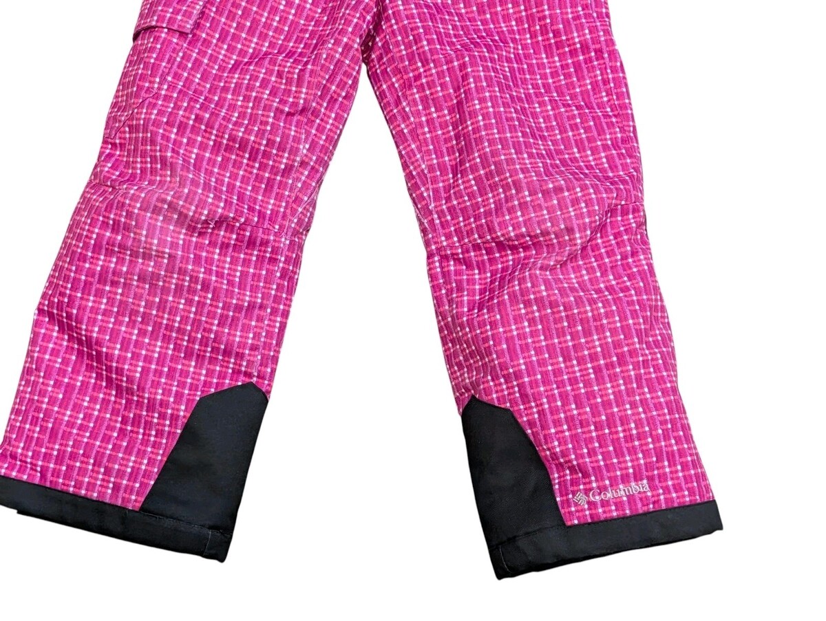 These are beautiful girls Columbia Omni heat ski pants size extra small 7/8. Bright pink plaid pattern. The interior features the Omni heat technology which warms you up from the inside. Button and zipper at the waist. Adjustable tabs to cinch the waist in. Leg Gators. These are in mint condition!