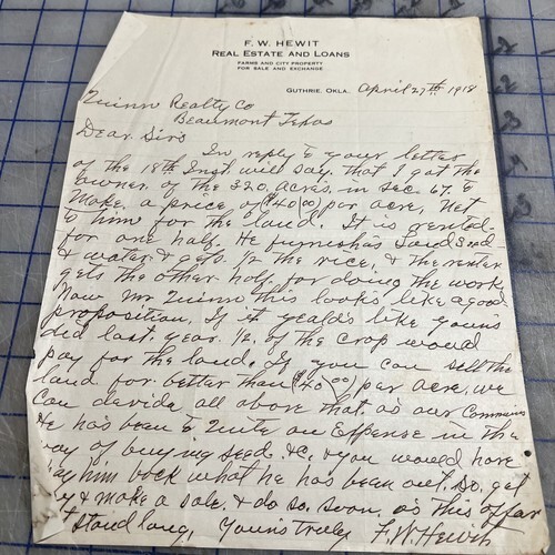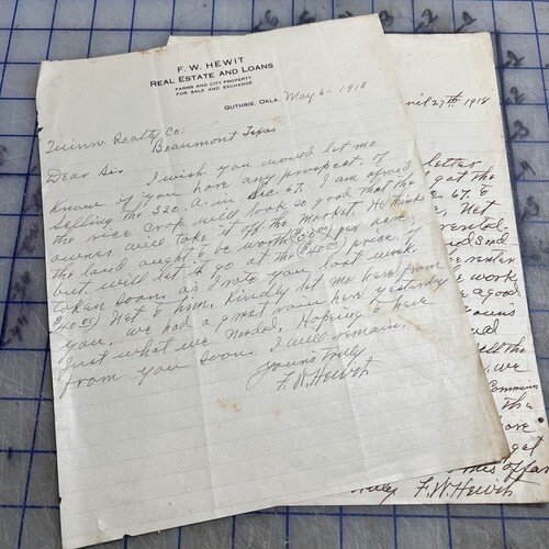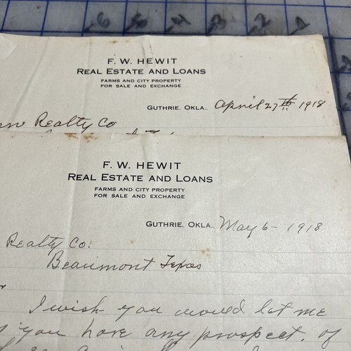 Vintage Letters 1918 Guthrie Oklahoma Signed F.W. Hewit Land Sale