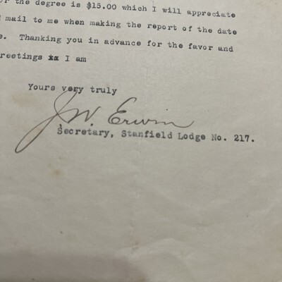 Antique Letter Masonic Stanfield Lodge No. 217 Denton Texas 1932 J. W. Erwin