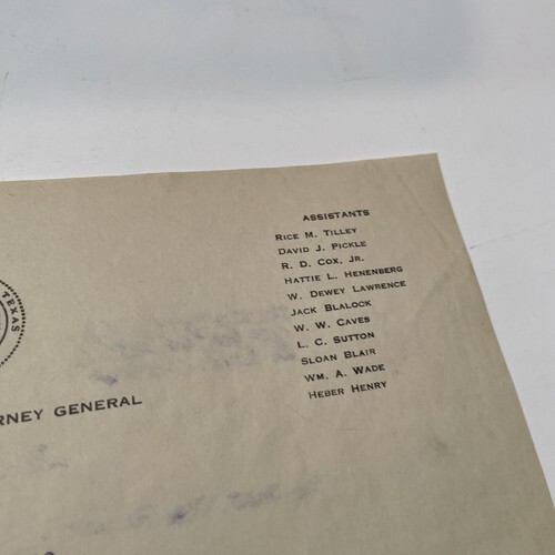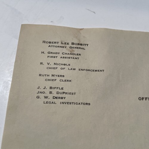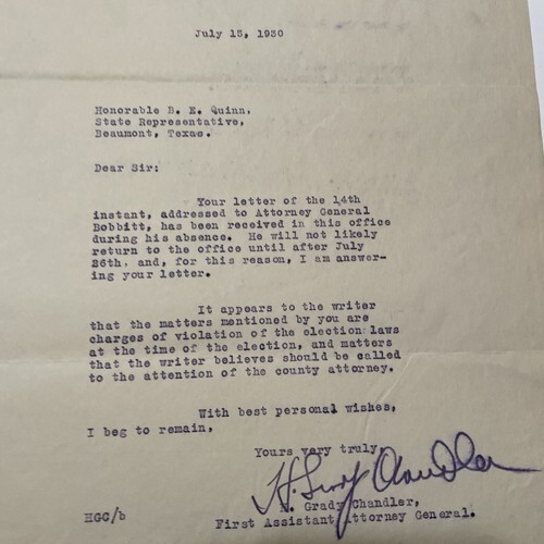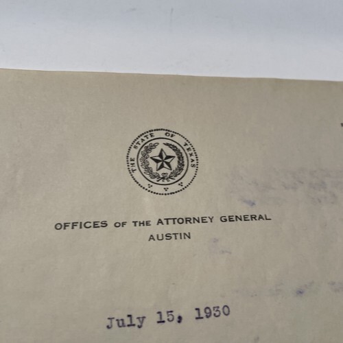 Offices of Attorney General state of Texas Letter 1930 H Grady Chandler 1930 Austin Tx.