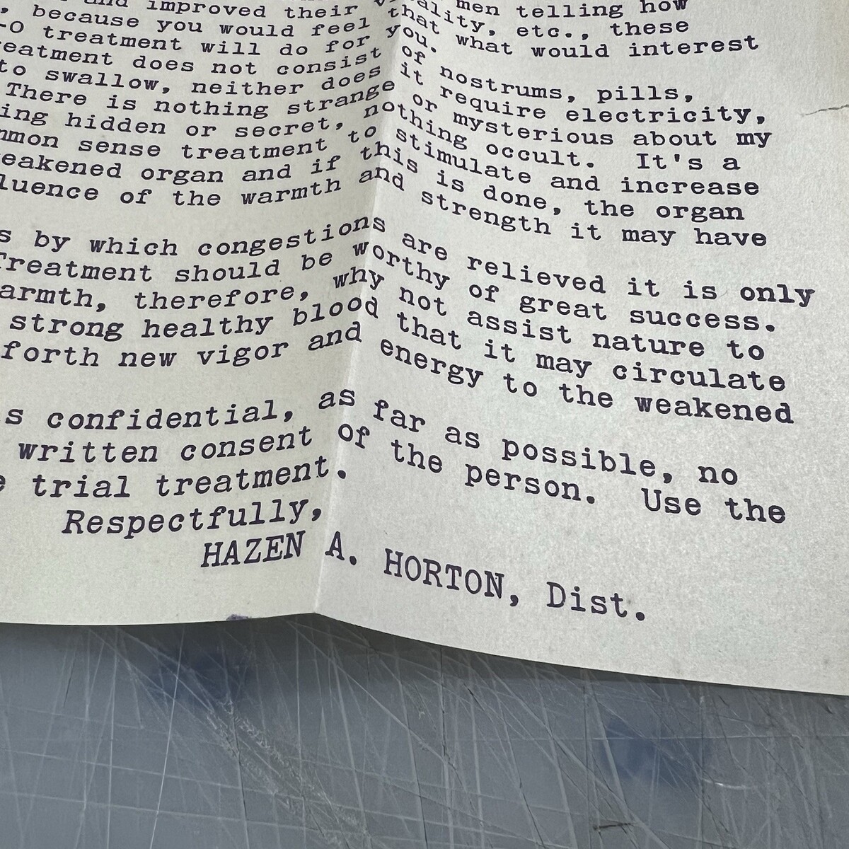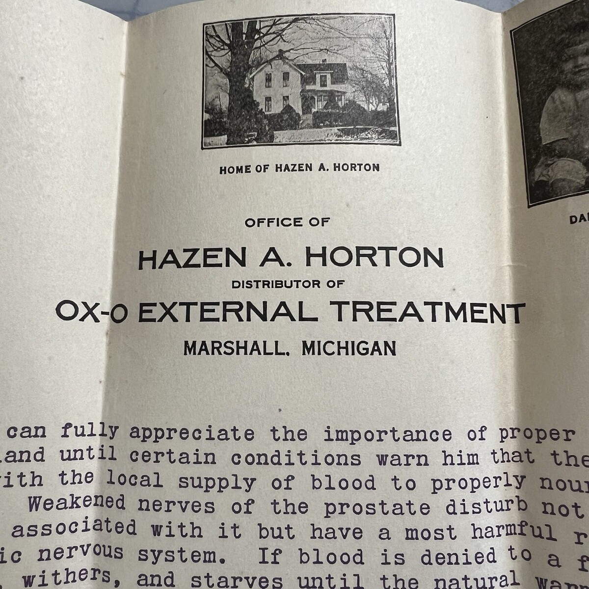 antique ephemera Hazen A Horton OX-0 Prostate Treatment Marshall Michigan