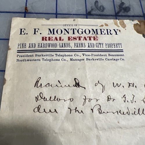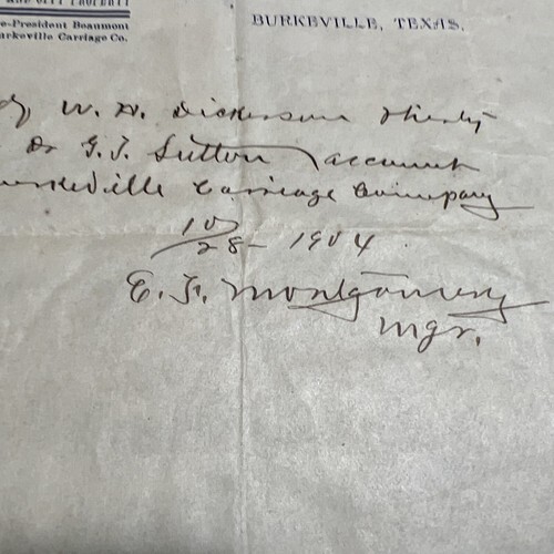 Signed E.F. Montgomery for money owed to the Burkeville Carriage company