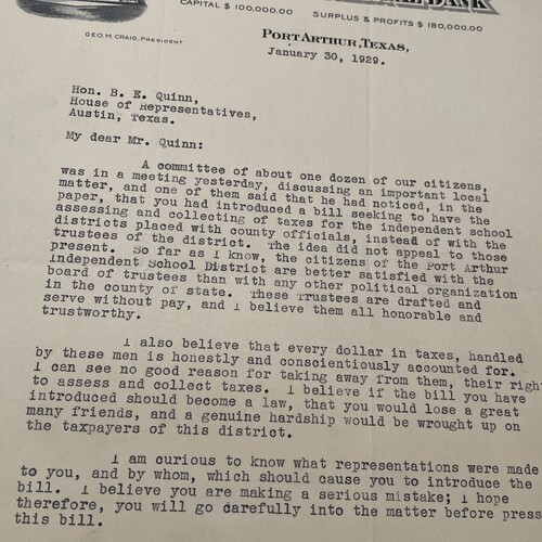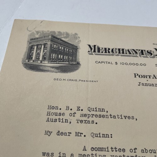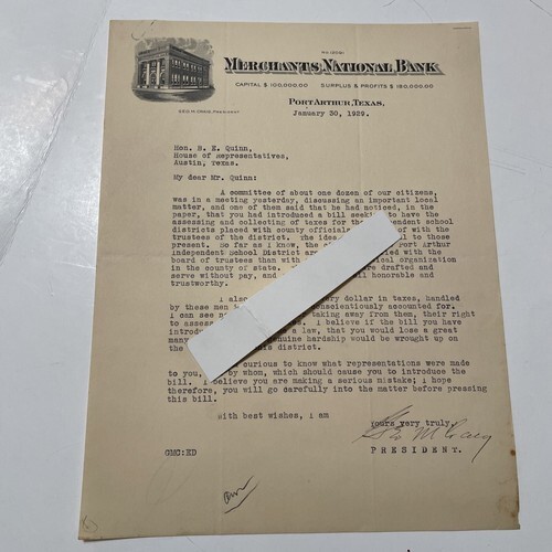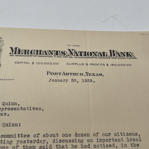 Merchants National Bank Port Arthur Texas 1929 Signed George M Craig TX Banking.