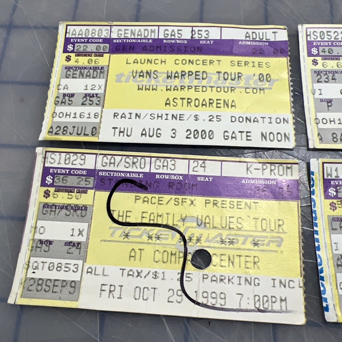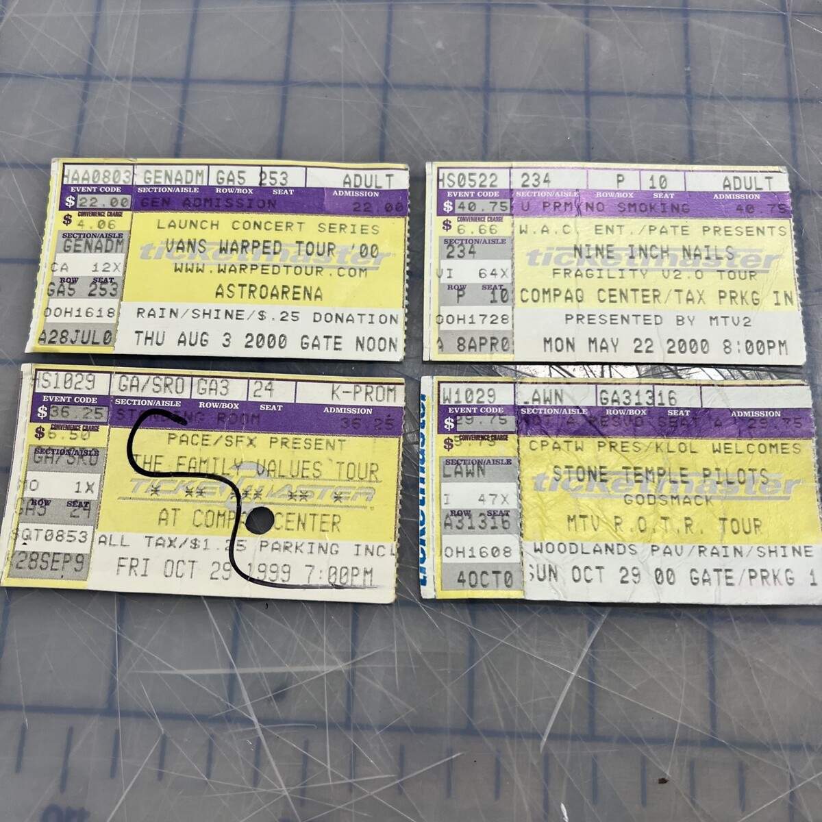 vintage concert ticket stubs 1999 2000 warp tour nine inch nails