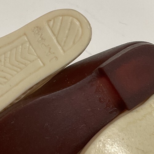 The white loafer dress shoe isn?t marked Japan nor is the ballet slipper.