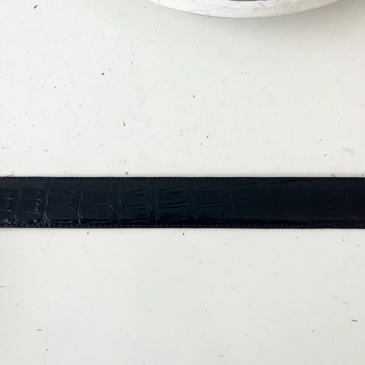 These are Rod Patrick Bootmakers Mens Belts in Black Caiman Leather that is 1 3/8" wide with a Taper. This is made in Mexico of Genuine Caiman Leather.