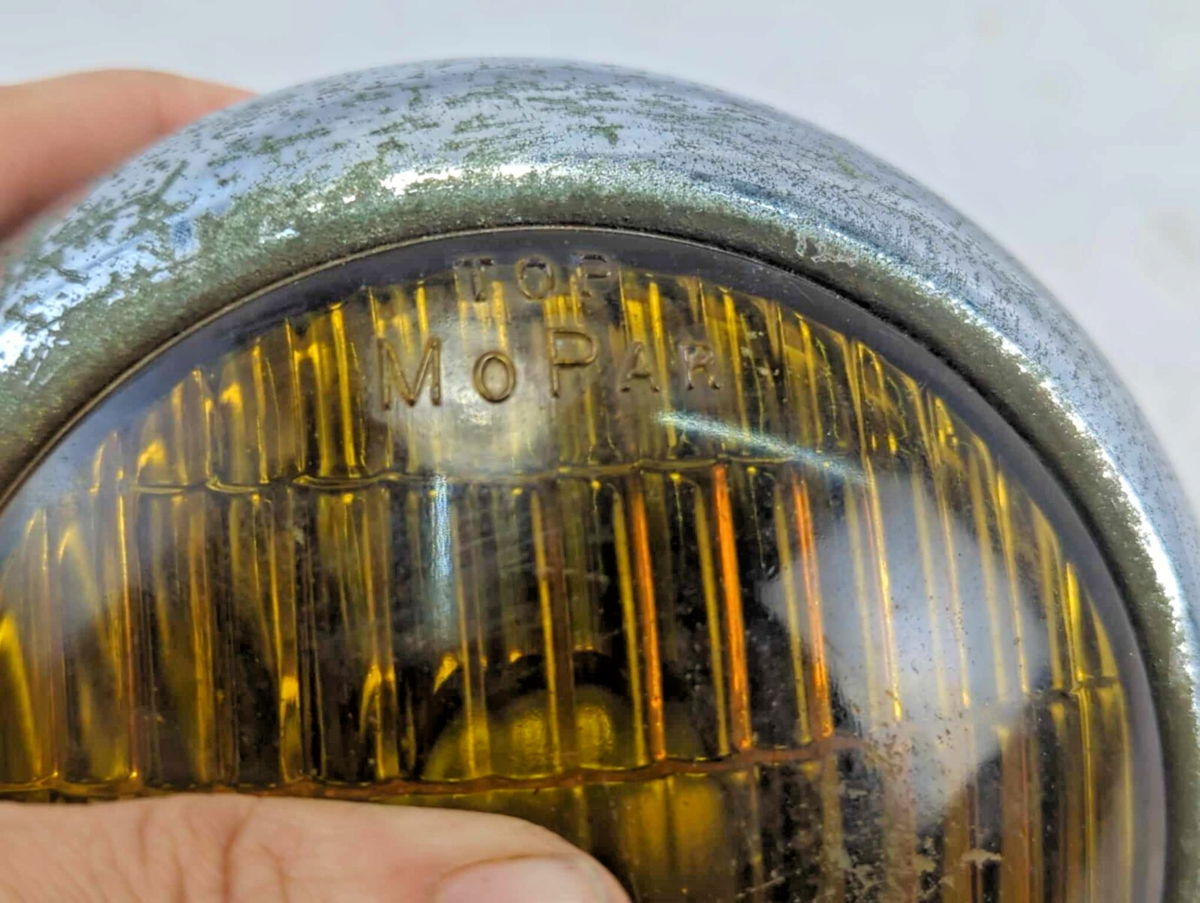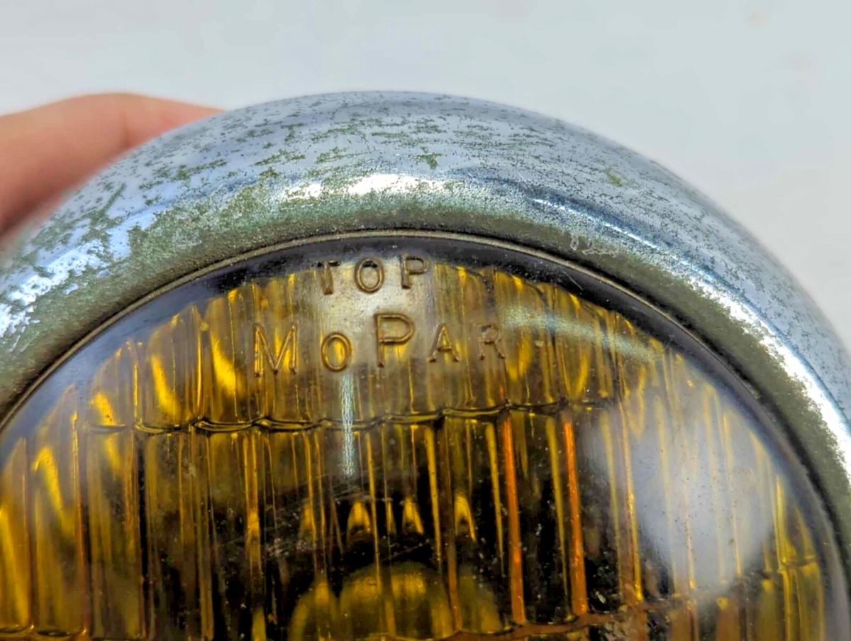 Exact item is shown. Amber lens and housing embossed "MOPAR." Chrome has some minor pitting and dents. Includes the mounting bracket shown. 12v. Does not include mounting hardware. The wiring and bulb pictured are included but are as is.