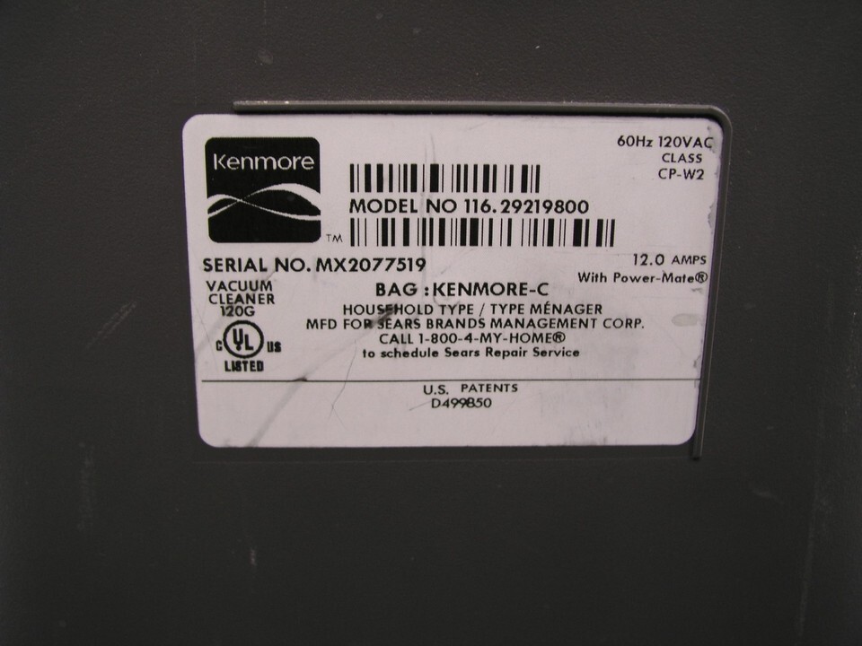 kenmore 116.29219800 vacuum. 360 HEPPA FILTER