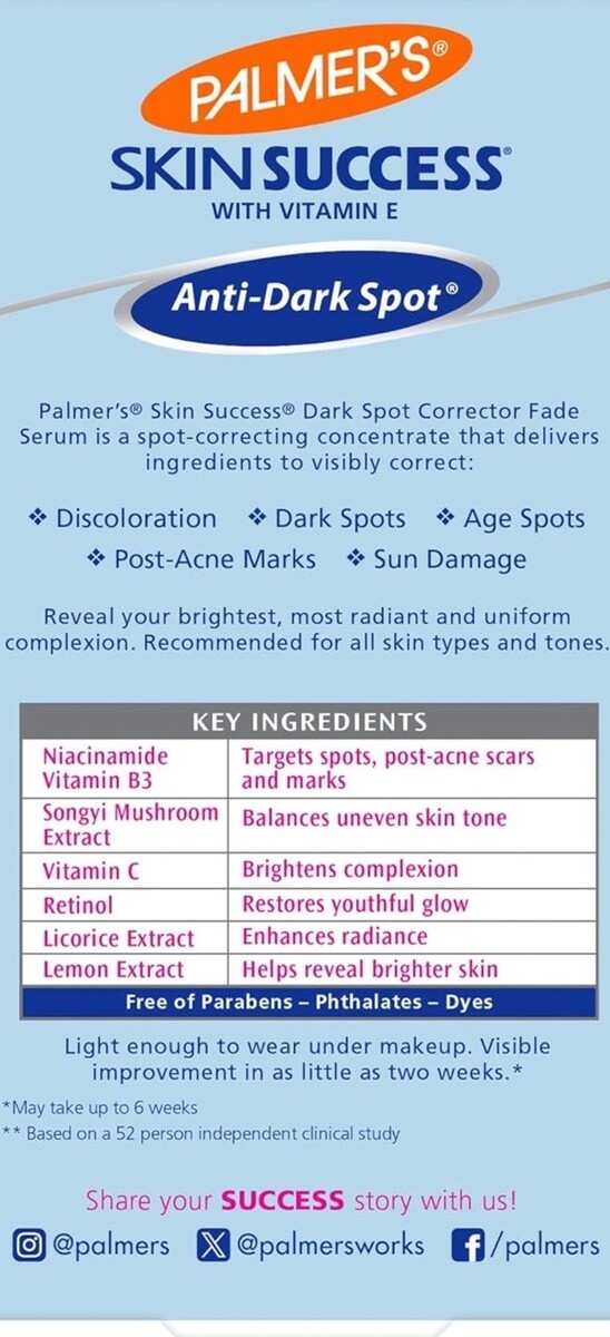 Palmer's Skin Success Dark Spot Corrector Fade Serum For All Skin Type White 1oz.