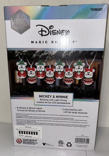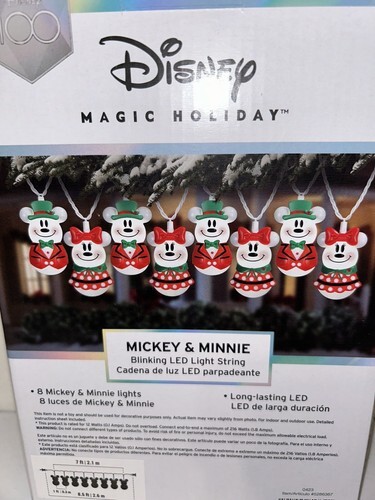 Add some Disney magic to your holiday decor with this Mickey Minnie blinking LED light string set. The set comes with 8 white lights featuring Mickey and Minnie shapes. Perfect for indoor and outdoor use, these string lights are ideal for Christmas decorations but can also be used for any occasion. The lights are easy to install and come with a white cord that blends well with any background. Get your hands on this Disney-themed light set and light up your holiday season with some extra sparkle.