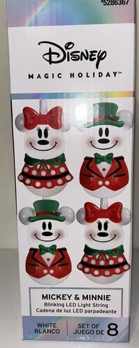 Disney Magic Holiday Mickey & Minnie Blinking Led Light String Set of 8 White