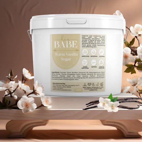 Cleanse and moisturize your skin with the Hey, Babe Emulsified Sugar Scrub in Warm Vanilla Sugar. This luxurious 128 oz scrub combines the gentle exfoliating power of sugar with the nourishing benefits of premium ingredients like shea butter, jojoba oil, and sweet almond oil. Designed to lift away dirt and impurities from your pores, this scrub leaves your skin feeling irresistibly soft and hydrated. The warm vanilla sugar fragrance adds a comforting and indulgent touch to your skincare routine, transforming an everyday task into a delightful sensory experience. Unlike traditional scrubs that can be harsh, our emulsified formula melts at body temperature, offering a unique creamy exfoliation experience. Perfect for all skin types, it?s an excellent addition to your self-care rituals.
