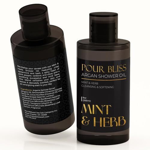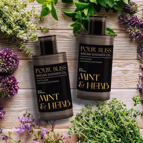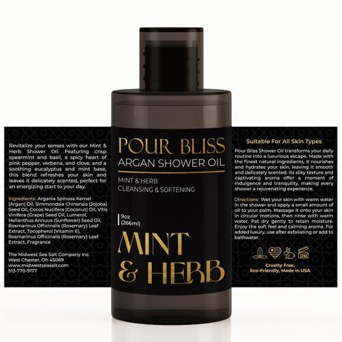 Mint & Herb Pour Bliss Cleansing Argan Shower Oil - 9oz, With Label |