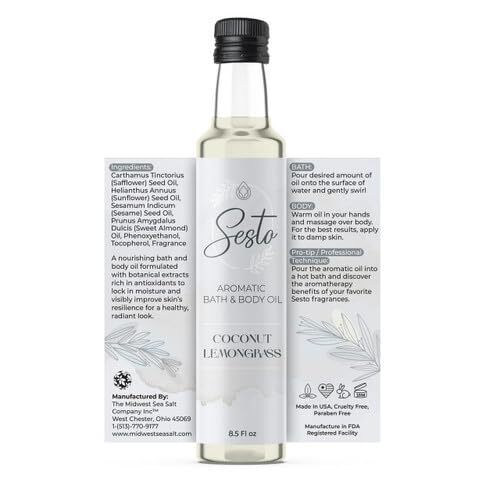 Sesto Aromatic Bath & Massage Oil - Coconut Lemongrass - 8.5oz, with Label