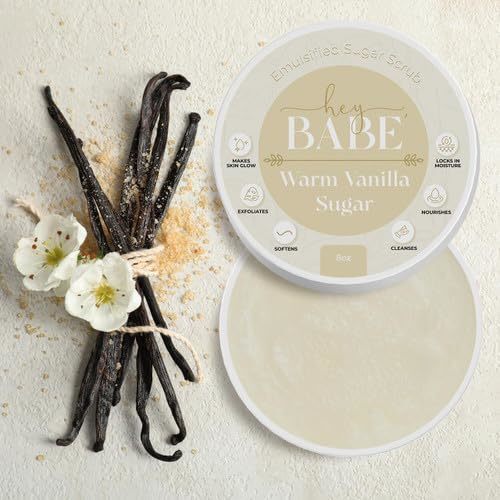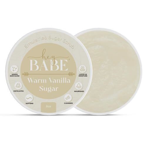 Experience the ultimate indulgence for your skin with Hey, Babe Emulsified Sugar Scrub in Warm Vanilla Sugar. This luxurious exfoliating scrub is crafted to cleanse and moisturize, combining a rich blend of natural ingredients. Sugar, shea butter, jojoba oil, and sweet almond oil work together to gently remove dirt and impurities from your pores while deeply nourishing and softening your skin. The warm vanilla sugar fragrance envelops your senses, creating a comforting spa-like experience during your skincare routine. Unlike conventional scrubs, our emulsified formula melts beautifully at body temperature, delivering a creamy, effective exfoliation that rejuvenates without stripping moisture.