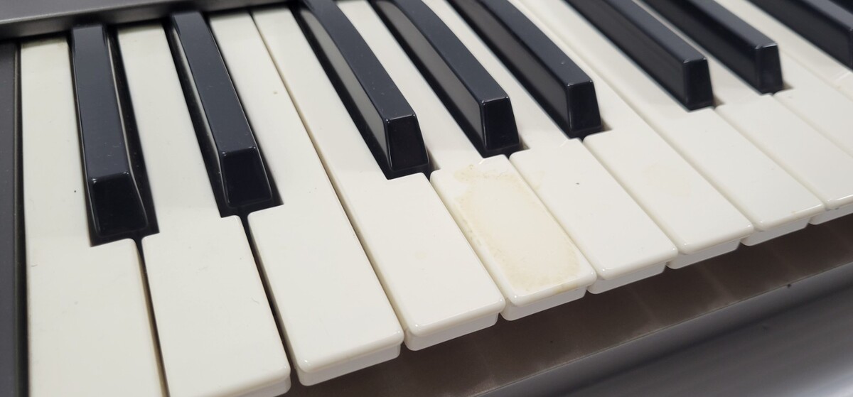 Keyboard has been in storage for many years. A reasonability check was done and some of the keys are either not working or need to pressed at the top to work. Keyboard will need to be serviced or repaired. Keyboard is in overall good physical condition with some signs of age, use and years of storage.