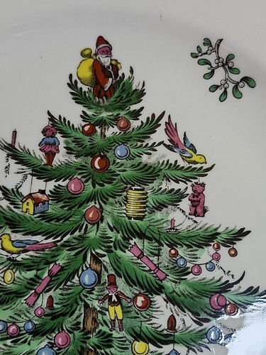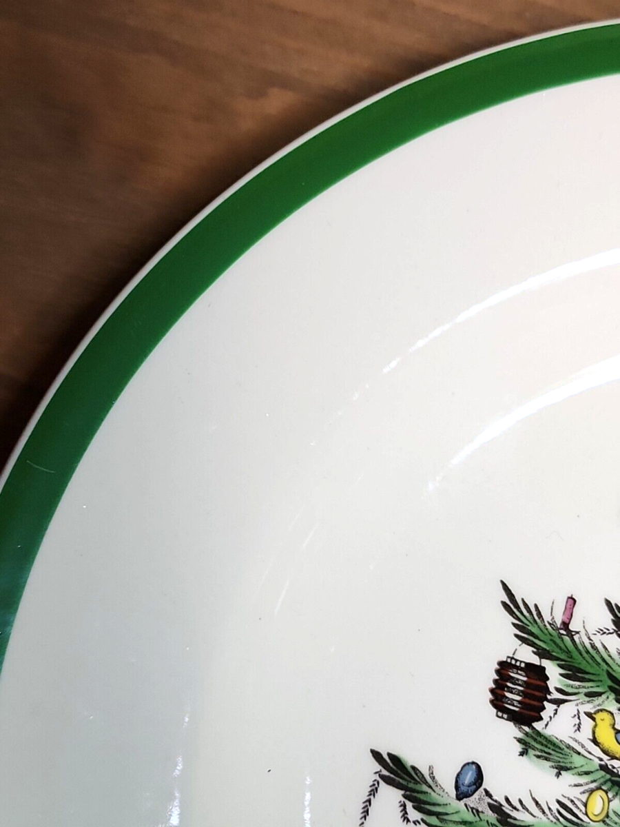 This is the 7-inch salad / side plate with the traditional green trim and the 1938 holiday tree artwork everyone recognizes.