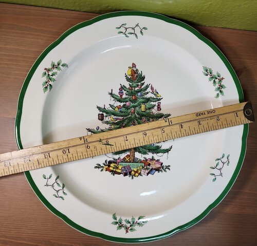 Spode Christmas Tree 12.5" Serving Platter Green Trim England S3324 Vintage