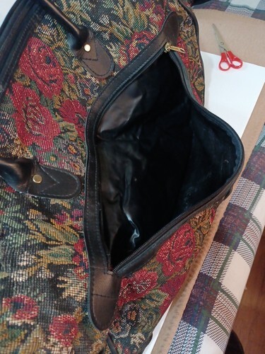 La borsa per il trasporto bagagli e 12" x 22 1/2" x 13 1/2". Questo viene misurato da bordo a bordo vuoto. L'espansione del materiale sara maggiore. Indichero le imperfezioni nelle foto. Sono borse resistenti.